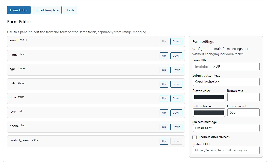 The same fields you place on the invitation are used to generate the form.